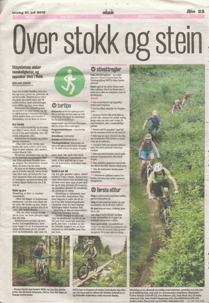 Ja, det der må vel kunne sies å være en vellykket artikkel om stiykling som uteaktivitet. Likte spesielt godt at følgende ble viet tilstrekkelig spalteplass; 1) NOTS, stivettregler og klopping 2) Turtips og nybegynnervennlighet (les; hvordan komme igang?) 3) Det sosiale aspektet ved stisykling Tommel opp for bra rigging, tilrettelegging og oppfølging fra NOTS!