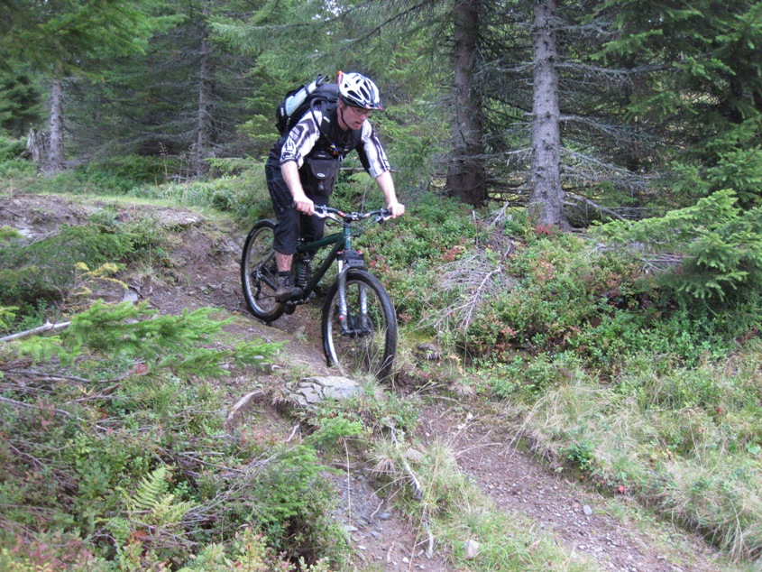 Jeg tror nok man skal være forsiktig med å sykle fort nedover der. Gående setter nok lite pris på å bli passert i høy fart på så smal sti. Derimot så det ut som om det er noen fine svabergpartier på siden av stien flere steder. En kombo er nok best.