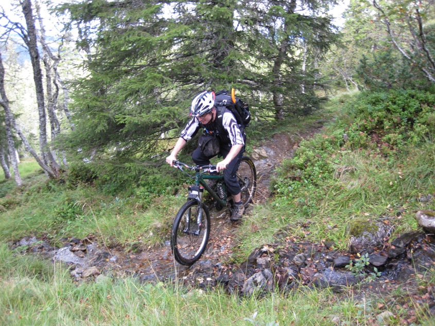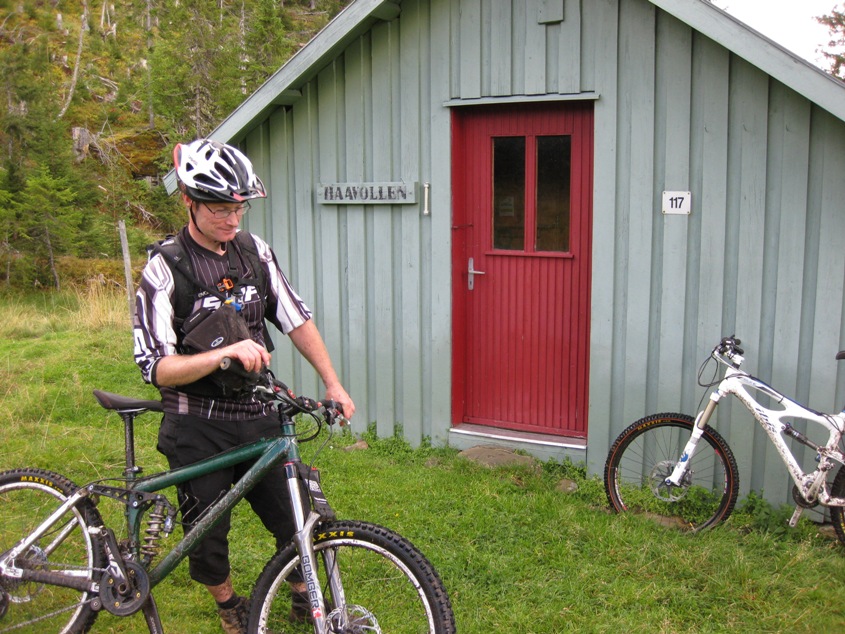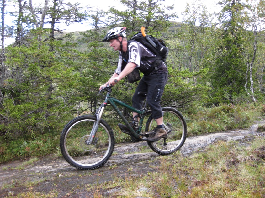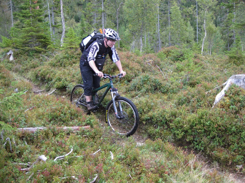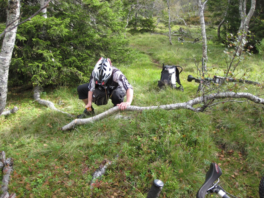 Hokken og jeg rydda mange hundre meter på den noe igjengrodde hogstveien nedenfor Hårskallen (Granabustaden-Rinnbustaden). Ca. 200-300 meter gjenstår slik at det kan sykles 2 i bredden uten å kjempe seg igjennom 30 år gammel småbjørk.... Det gjenstår da 300 meter frem til elva og stia som går til Rinnbustan i noe "tricky" terreng. Foreløpig er de beste løsninga å gå høyt oppe i lia her slik at du kommer unna det jævlige området nede på myra.