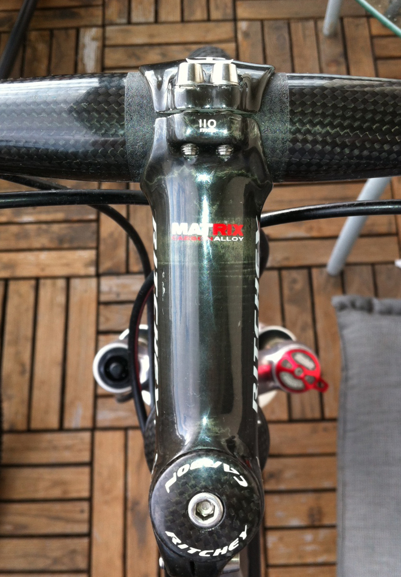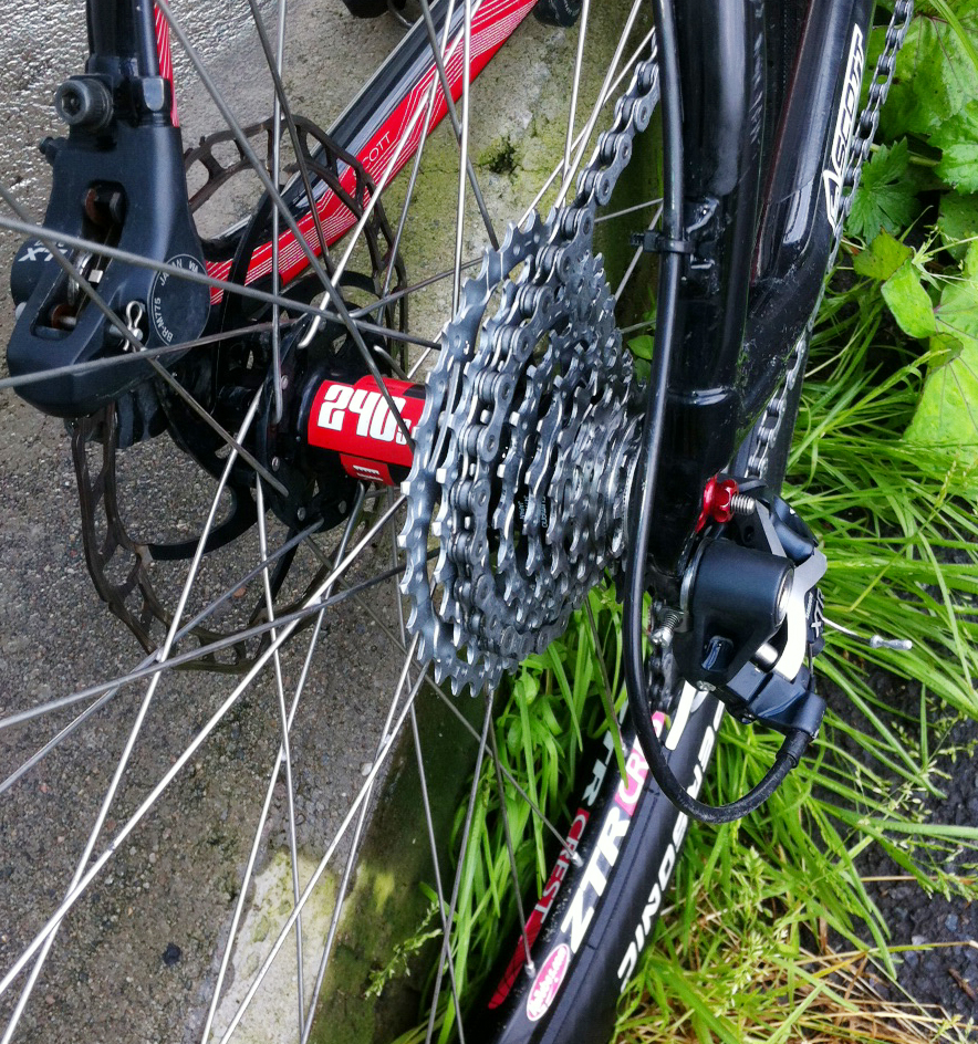 Ramme: Scott Scale LTD 2008 XL, Carbon HMX net (ny og ubrukt 2010) m/Stubby Ritchey WCS og styrelager Ritchey WCS carbon (nye lager Aug 2012) (Topp setepinne til senter krank måler 76 cm + stubby) Styre: Ritchey WCS Carbon Stem: Ritchey Matrix Carbon/Alloy 110mm Gaffel: 2008 Manitou R7 MRD ABS 80mm (ny 2012) m/kvittering Krank: XTR 970, 175mm (ny 2009, 44-drev byttet Juni 2012) Kranklager: XTR (nytt Juni 2012) Krankgir: XT 760 Bakgir: XTR 970 (nytt Juli 2011) Kassett: XT 770 11-32 (ny Aug 2012) Kjede: XTR (nytt Aug 2012) Brems/girsjaltere: XT 775 Dual Control Bremsecalipere: XT 770 (nye klosser) Hjul: ZTR Crest, DT 240s Xon skiver Dekk: Conti Raceking 2.2 Sete: Selle Italia SLR xp