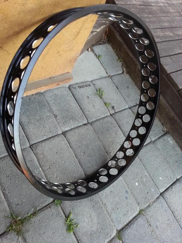 Kjøpte som nevnt tidligere i tråden, felg fra Robsson i tyskland. 32 hull 80mm. Var 16 hull på hver side, og jeg borret opp 16 ekstra slik at jeg kan sette dette opp på et lefty nav. Lettet felgen samtidig, så blir spennende å se hvor lenge den holder:) Endte opp på 670gr. Virker fortsatt veldig stive og fine. Blir 47mm felg bak fra Trial-Bikes.com i spania. Både Robsson og Trial-bikes har gitt veldig bra service.