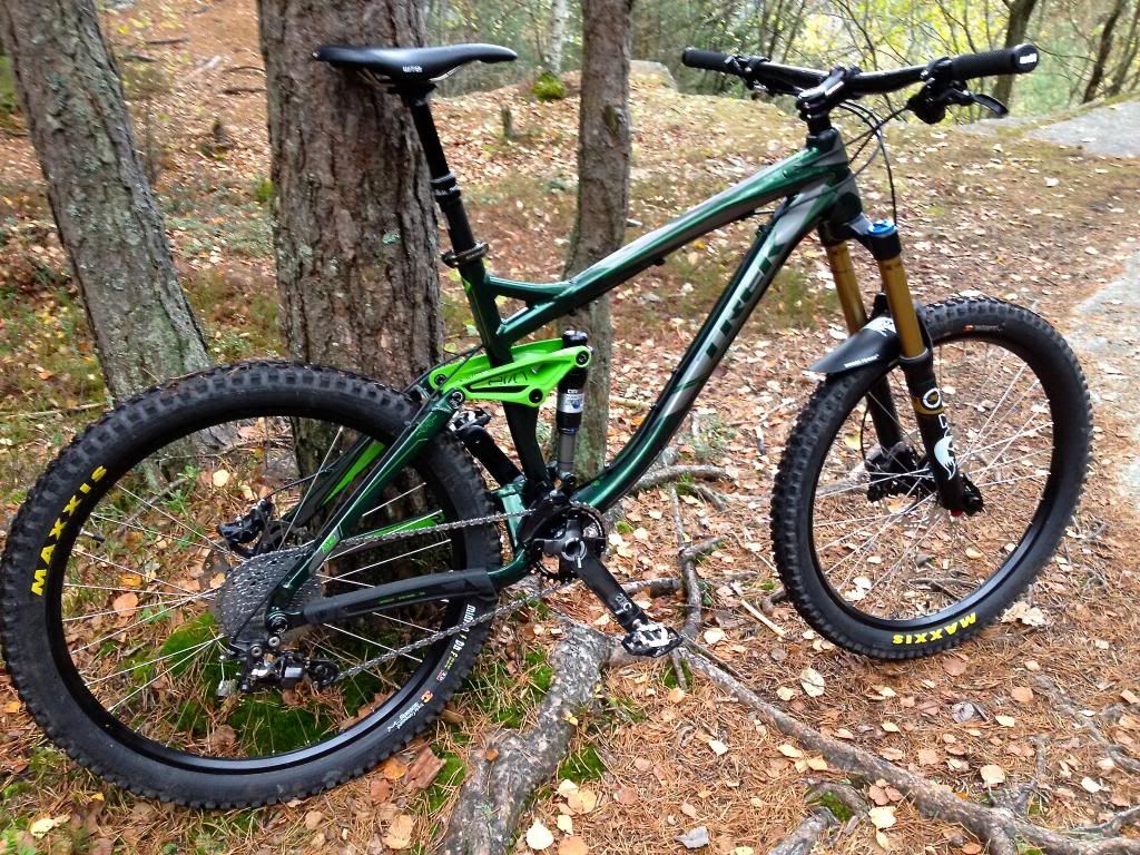 Trek Remedy 2013 Fox DRCV-bakdemper med PUSH volumspacer for å få den mer progressiv. Fox 36 Float RC2 Hope Pro 2 Evo m/Stans Flow Raceface SIXC krank (takk til Raymond for den!) Wolftooth 32t drev E*13 XCX kjedefører Saint gir/skifter XT bremser Syntace Megaforce 2 60mm stem Bontrager Rhythm Pro Carbon styre kappet til 780mm Rockshox Reverb Stealth