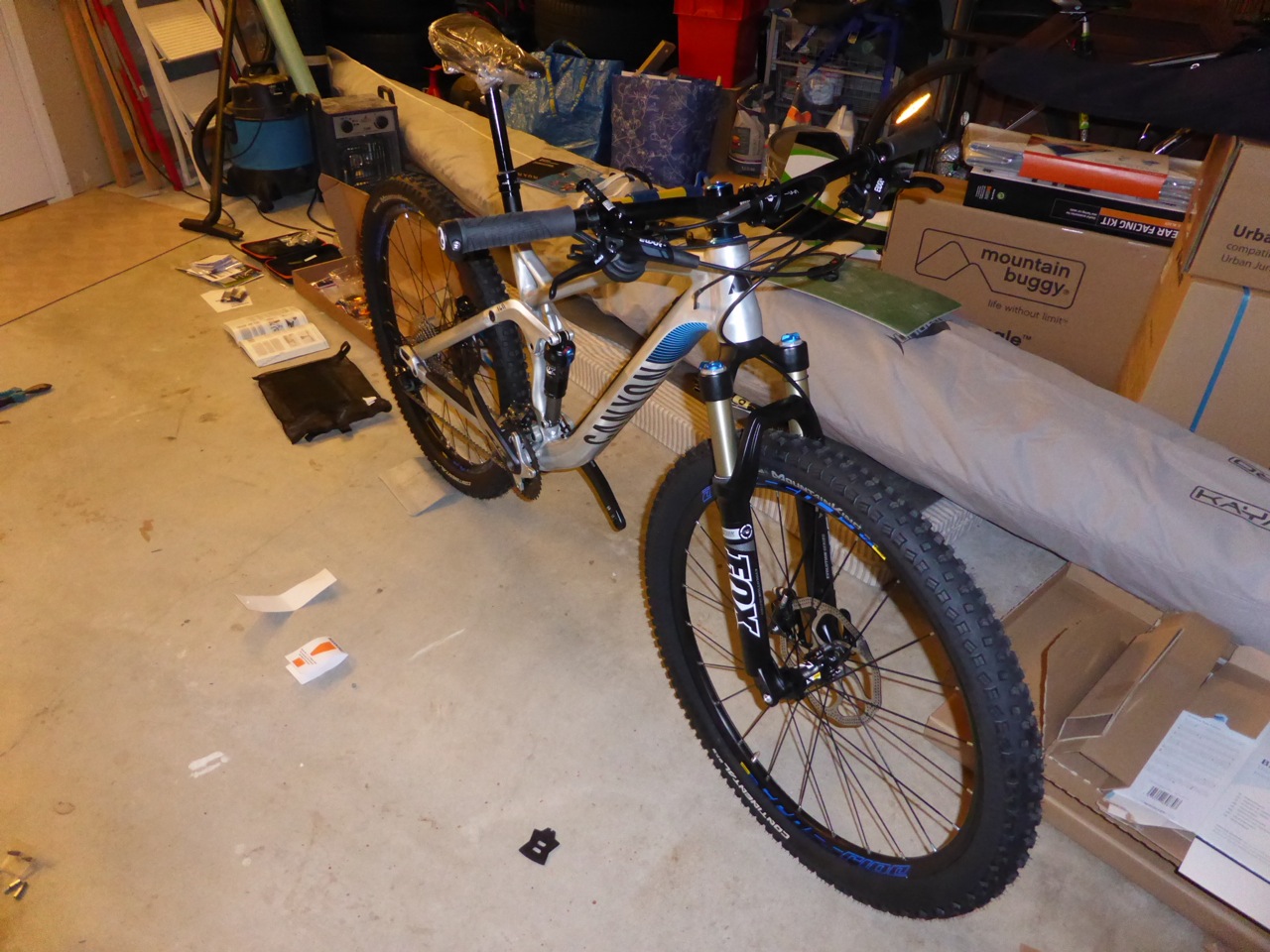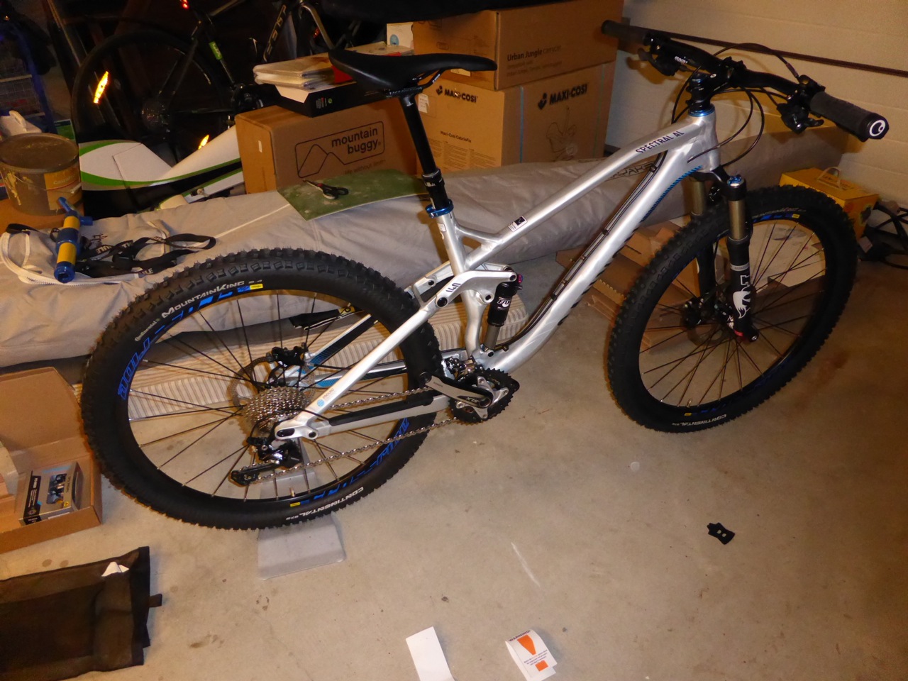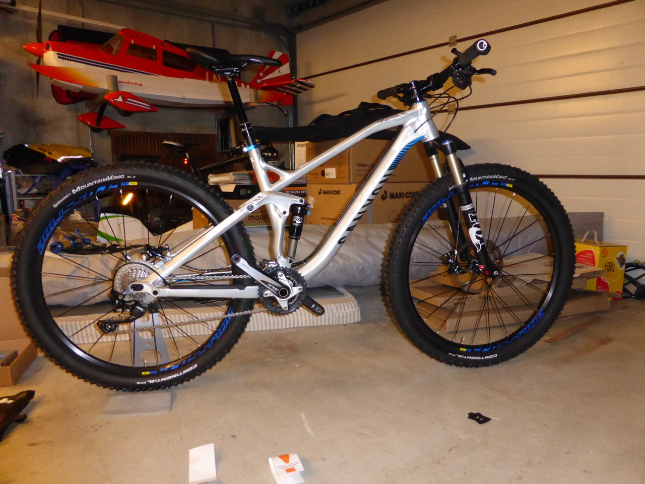 Første fulldemper, og første sykkel med juksepinne, så mye å lære seg nå. Venter derfor litt med å sette opp slangeløst, også det blir første gang for meg.