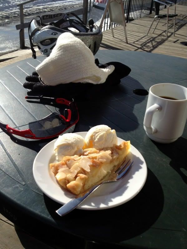 Påfyll på sollighøgda kafè under en tidlig vårrunde i fjor. Sykkelen står parkert i nærheten men kake og kaffe var mest interessant for fotografen: