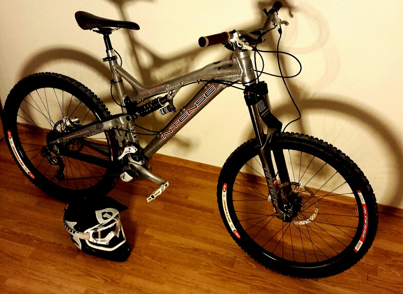 Foreløpig 100% standard Specialized Camber EVO, str XL. Min første fulldemper, strålende fornøyd foreløpig. Har kjøpt prylbøg-hjulsett som skal på når snøen forsvinner.