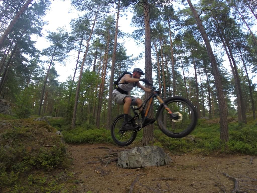 Sulliker!Igår var det 30 pluss i Østmarka/Trulsrunden og 3/4 trøye fristet ikke. Fisket fram en gammel Dakine sleeveless og det var finfine saker. Dere som har så innmari mye imot hvordan man kler seg kaster vel litt stein i glasshuset mtp på nevnte legning? Såklart har jeg bilde, testing av ny gaffel!