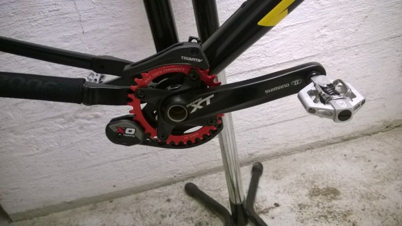 Som sagt så blir det ikke aktuelt å bruke den nedre kjedeføreren pga clutchgir. Håper bashguarden er bedre enn kjedeføreren;)