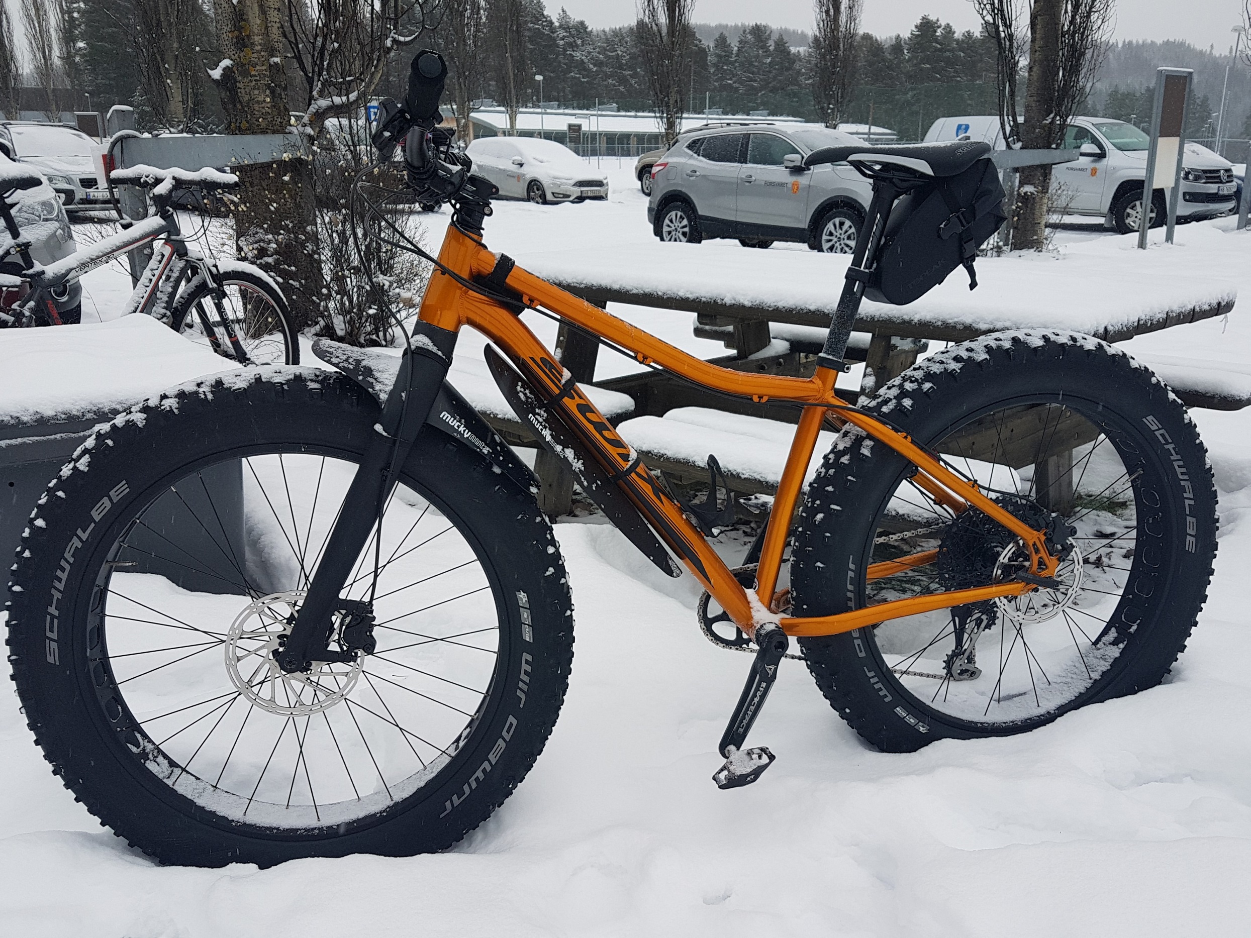 JonE, grattis med flott maskin ! Jeg fikk også fatbike nå nylig og snø/barfrost under dekkene i helgen. Ordentlig gøy og den fungerer fint på sti også :-) skal få lagt ut et bilde av min også...