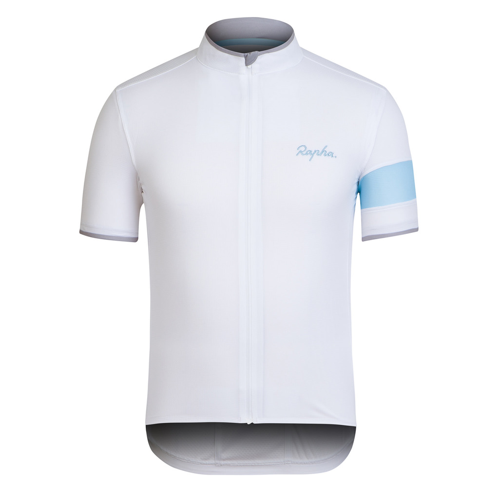 Ser Rapha fører sin Super Lightweight Jersey i hvitt med Gulf-blå stripe i 2015 også. Synd de ikke har matchende bib! Eller er jeg bare dårlig til å lete?