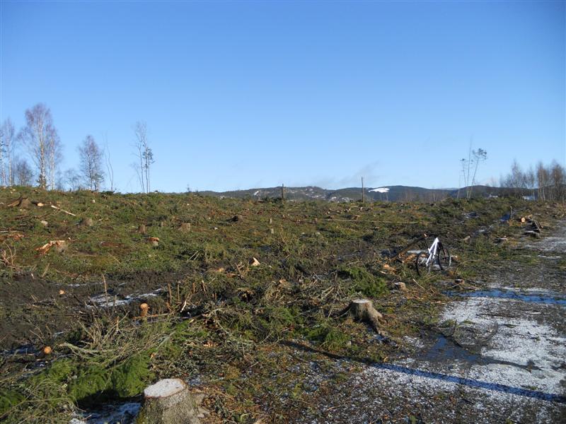 Var en tur der i går og nå var det tatt mer skog siden sist jeg var å tittet. Kjenner at jeg blir trist og lei nå. Men, for oss som husker forrige gang hogstmaskinene knasket skog på Trones så er dette inngrepet lite i forhold, selv om det kjennes ut som en fattig trøst nå. Det blir en utfordring å gjemme seg unna de flyvende golfballene heretter. Ryddearbeidet er også enormt. Sorgprosessen min består nå av å bare kjøre ski frem til april.