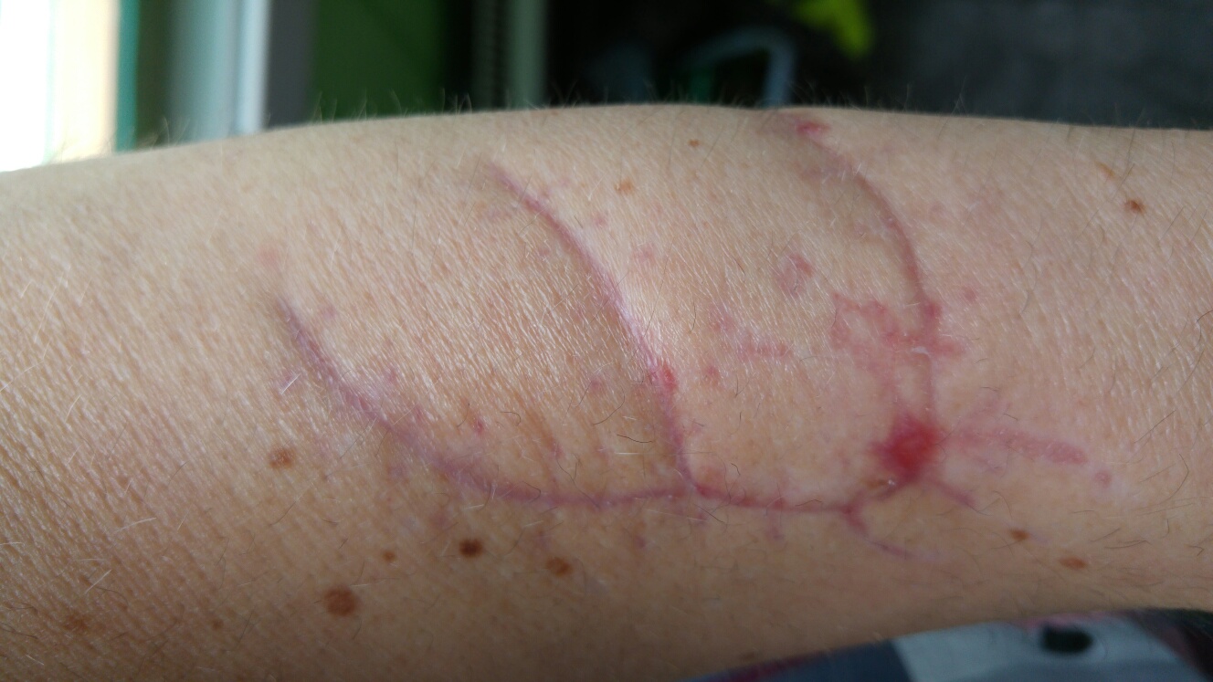 Jeg har faktisk et ganske ok førstehjelpssett som nesten alltid er med, men av en eller annen grunn lå det hjemme i går. Aldri mer. Ikke at det hadde gjort så stor forskjell i går, men hadde jeg truffet med innsiden av armen, ville det vært kritisk.