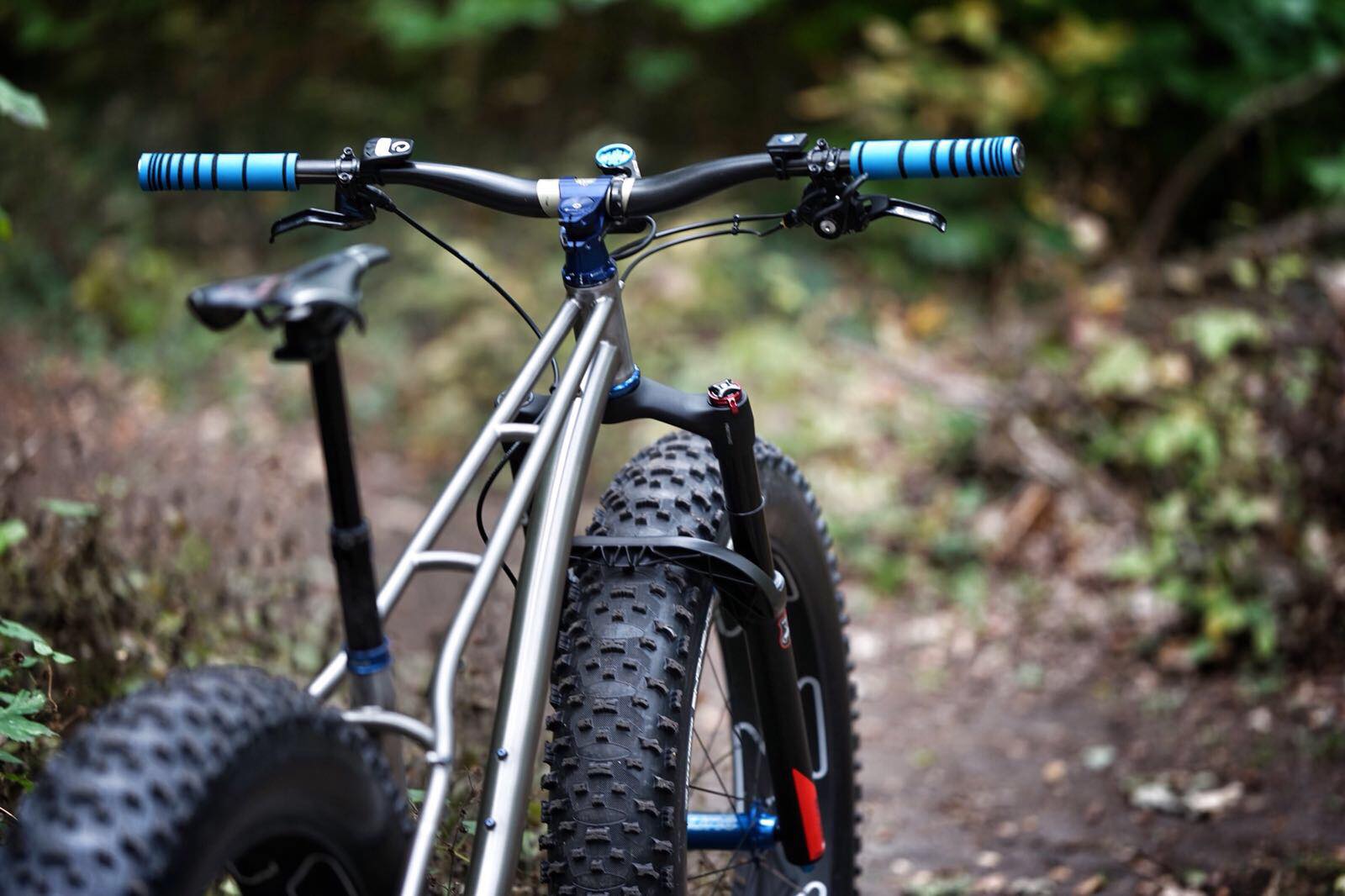 Klar for vinterføre med Snowshoe XL 4.8 og Jumbo Pigg 4.4. Litt lite klaring bak på kjedet på letteste gir. Må ligge under 7 psi for å unngå kontakt. Hadde løst problemet med Kindernay nav. 7 PSI er litt lavt for pendling, men helt greit på sti sykling.