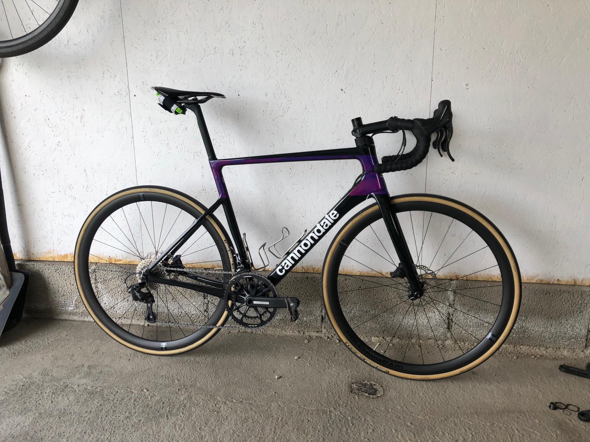 Så jeg snurten av en ikke kjedelig lilla flyvemaskin med en Rapha jålebukk på toppen, lørdag formiddag i Vestby ? Kom litt brått på ellers skulle jeg foreslått et bilde ved siden av min pene og blanke lilla-glinsende CAAD12. Fikk en smell i en carbonfelg men kom meg videre med slange. Innvendig ser felgen «nesten» hel ut men utsiden er flisete og ødelagt.