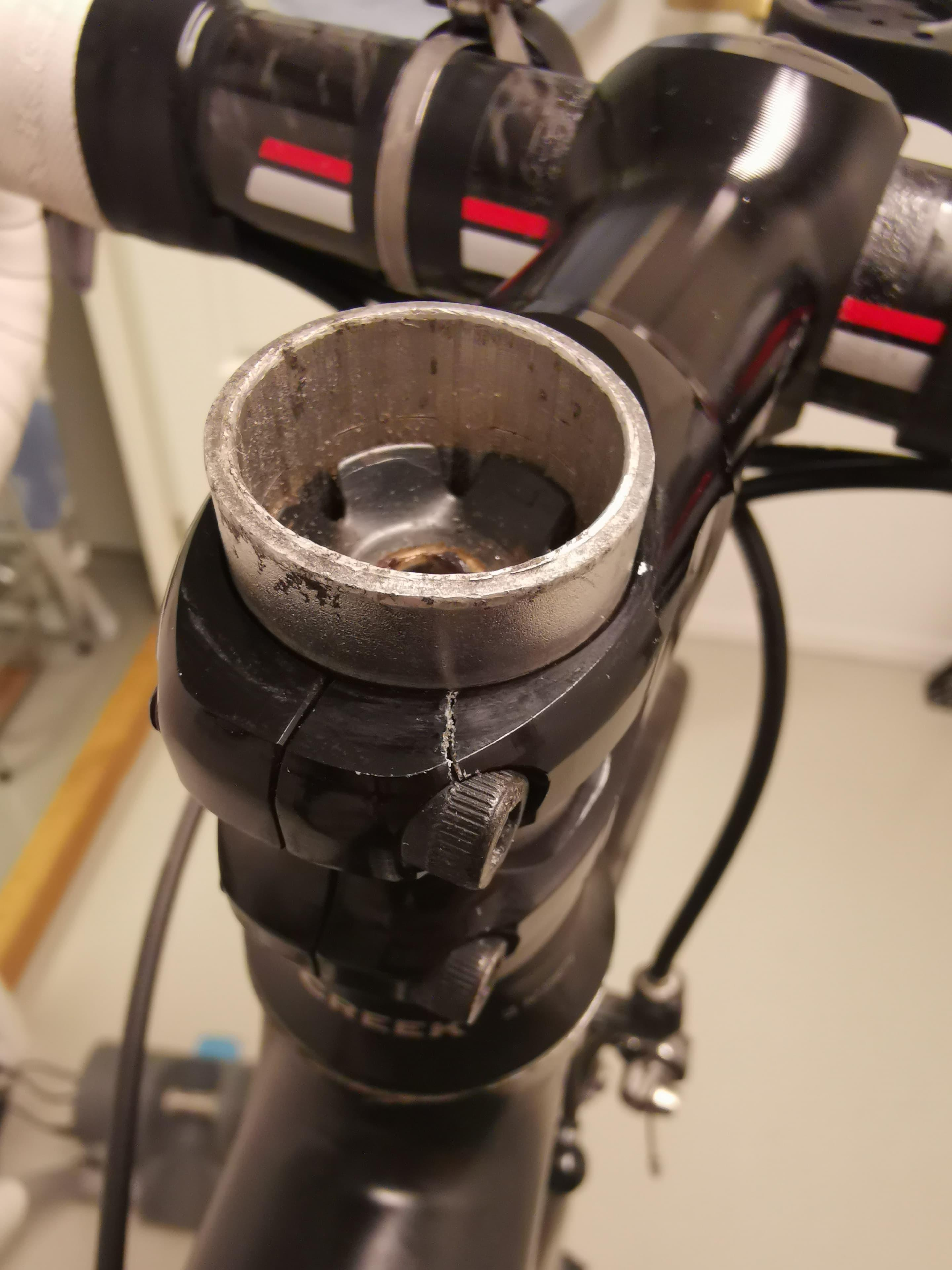 Ikke terrengsykkel, men jeg hadde en litt kjip oppdagelse da jeg skulle justere styret på raceren her i helgen. Mitt trofaste Thomson X2 var ikke så trofast like vel. Verdt å merke at jeg har ridd dette stemmet i snart ti år så det har vel fått sin brukstid, men det viser hvor viktig det er å inspisere kontaktpunktene jevnlig. Og nei, jeg har ikke overstrammet boltene. Etter et kjapt søk på nett er Thomson plaget med langt flere brekkasjer enn jeg hadde trodd. Kanskje jeg skal bytte ut X4-stemmet som sitter på stisykkelen også?