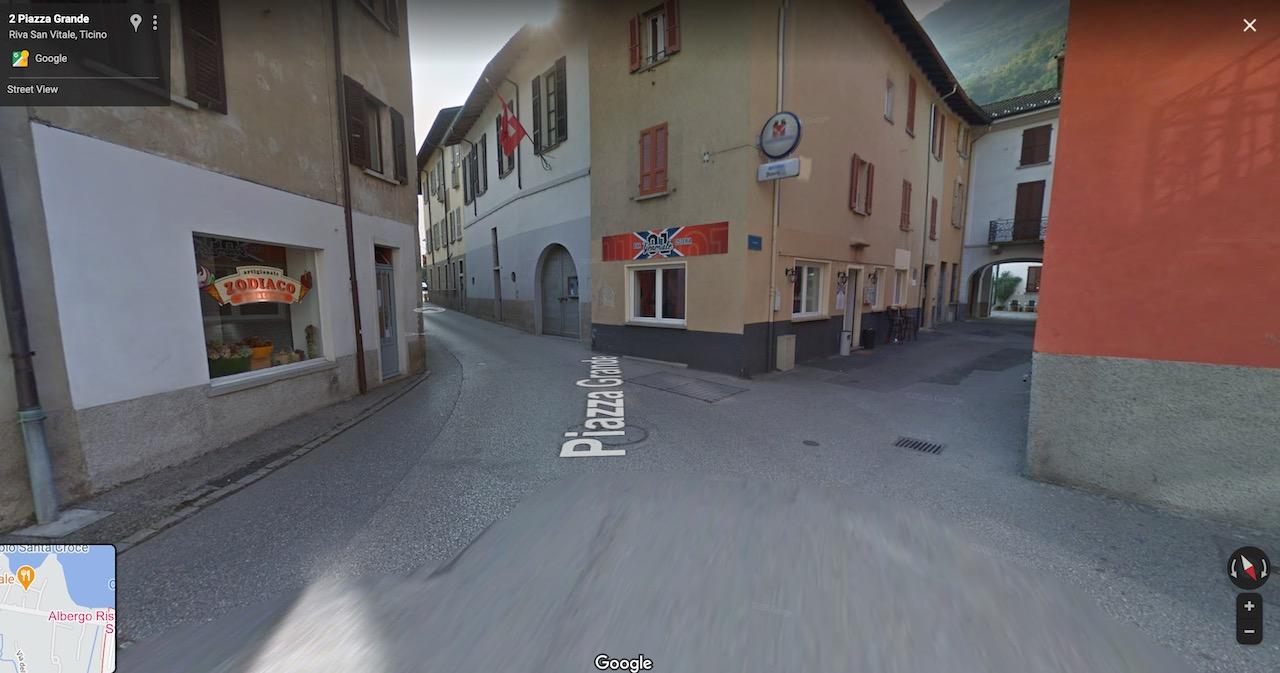 Svingen i Capolago - sett fra slutten av rettstrekken - løypa går inn mot den hvite bilen
