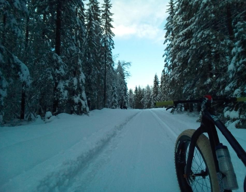 Kom en 8-10cm med nysnø i marka i løpet av natten. Ulikt forrige uke så var det idag ikke måkt fra Movann til Ørfiske, men det var derimot supert måkt fra sørenden av Ørfiske over til Hakadal, så motsatt måkemønster vs. forrige uke. Det er kjørt noen biler på Movann-Ørfiske strekket, men nylig bil-komprimert snø på hardt underlag er ofte tricky, så her kan det være lettere å kjøre på urørt snø mellom bilsporene, jeg så at en MTB hadde gjort det. Østsiden av Maridalsvannet var nypreparert og myk idag, ie. kun fatbike med typisk 6psi eller mindre, men den vil nok sette seg rimelig raskt, ble en god del fastere bare i løpet av de tre timene som jeg var ute.