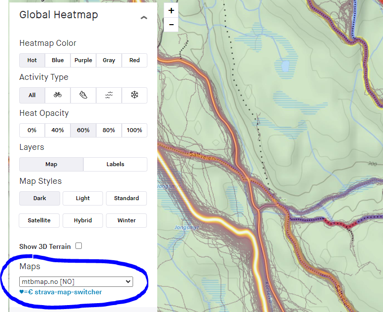 Hmm. Jeg har Strava map switcher Chrome plugin, og kan da velge kart også i heatmap. Hos meg er den blank om den står på noen av kartene da jeg åpner nettsiden, men fungerer da når jeg bytter kart. Kanskje prøve å installere den?