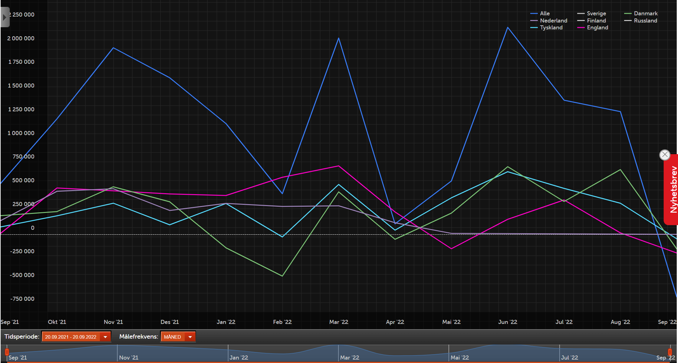 Här är dugn prisen för Kristiansand och Estland de senaste månaderna. Notera toppen 16 augusti.