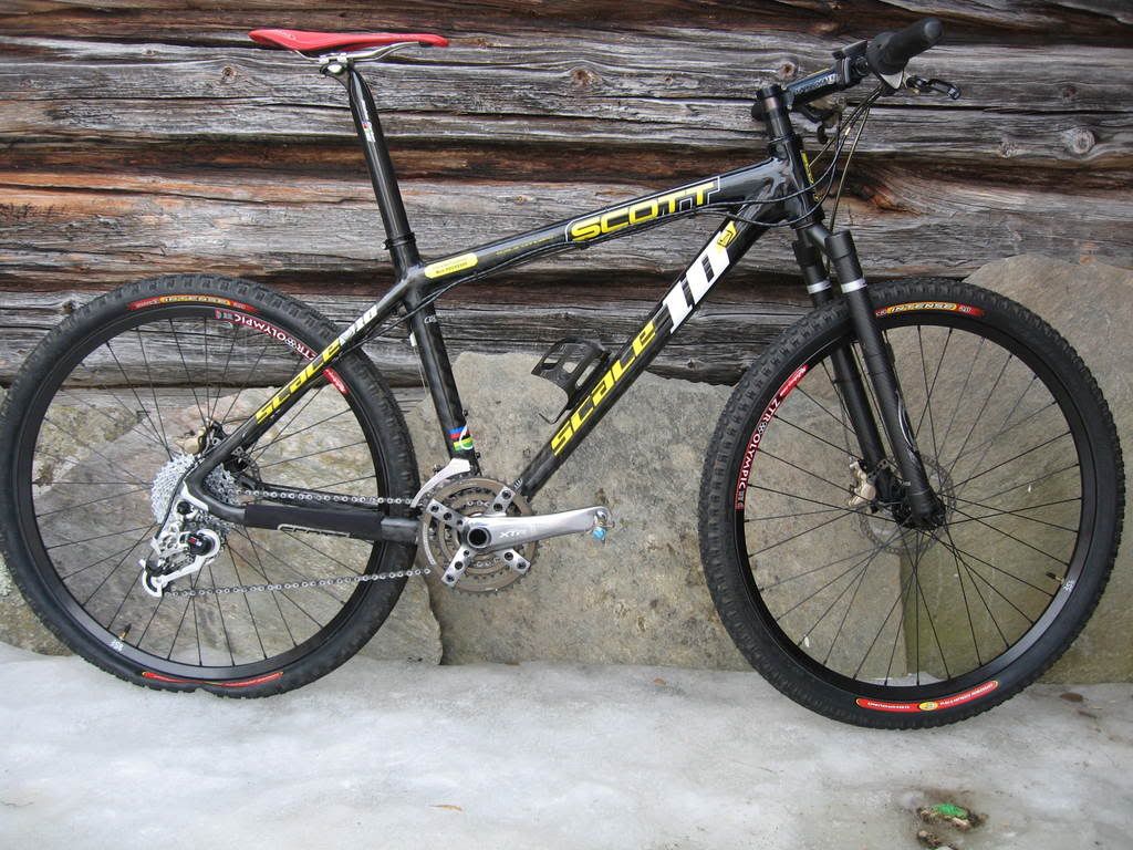 Ramme: Scott Scale 10 Gaffel: Pace RC31 Ti Hjulsett: American Classic, NoTubes ZTR 355, DT Revolution 1.8/1.5/1.8, Alu. Skiver, Titanbolter, Michelin XCR dry 2, Stans Latexguffe Bremser: Formula Oro Puro Framgir: Shimano XTR Bakgir: SRAM X0 Girvelgere: SRAM Gripshift X0 Girstrømper: NOKON Krank: Shimano XTR, 3 stk Middelburn skiver, Extralite bolter Setepinne: Ritchey WCS Sete: Selle Italia SLR Pedaler: Eggbeaters SL Styreframspring: Extralite Ultrastem SL Styre: FSA K-Force Holker: Extralite skum Hurtigkoblinger: Et eller annet American Classic Kjede: Shimano XTR Kasett: Shimano XTR Flaskeholder: Noname Carbon (1 stk) Styrelager: FSA Orginalt Seteklemme: Orginal