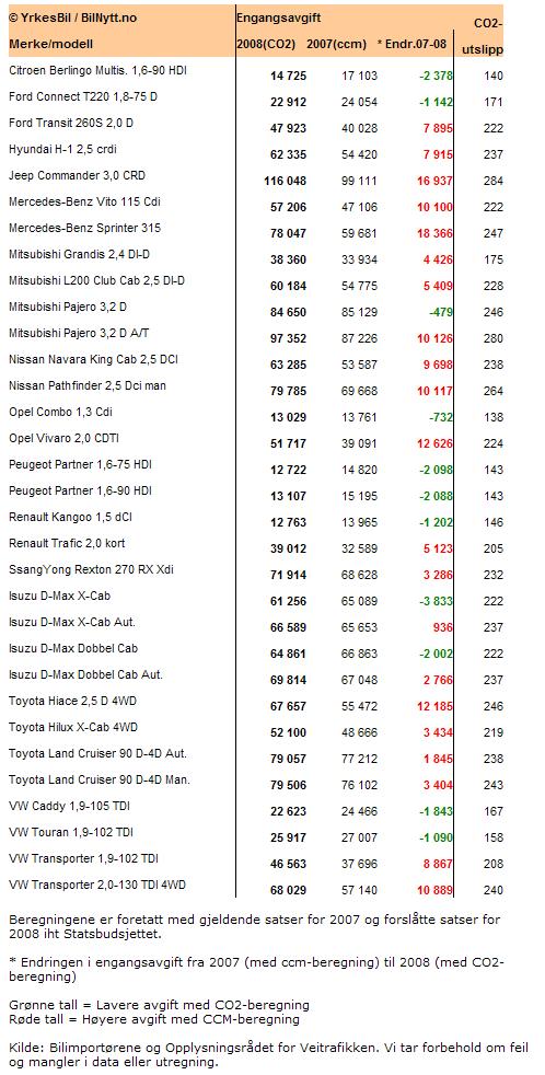 Nå slår ikke forslaget fullt så galt ut for alle grupper. Spesielt ikke de med små varebiler, som f.eks. Touran som du nevner. Avgiftene der går faktisk ned .
