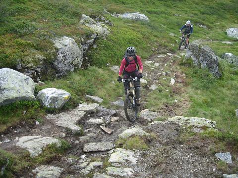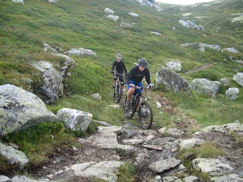 Det er delvis den fra kongsvoll. Vi starta fra Grønbakken. Disse to stiene møtes etter et lite stykke. Det skulle være en bro over elva for å komme inn på den stien fra kongsvoll. Men den fant vi aldri, så det ble litt bal over elva. Den var ganske stri.. Men vi var veldig glade for at vi valgte å starte fra Grønbakken da vi sykla kongsvollstien på vei ned (og hovedveien til grønbakken igjen). For de bakkene opp fra kongsvoll vil jeg tro er rimelig harde! Men nedover derimot ::