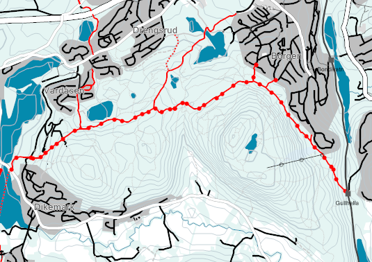 Ja opp til 60°N. Her er noen varianter: Vardåsen sommer med blåstier. Vardåsen skiløyper. Nederst en oversikt over blåstier og skiltsteder i Vestmarka.