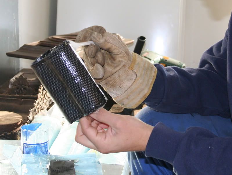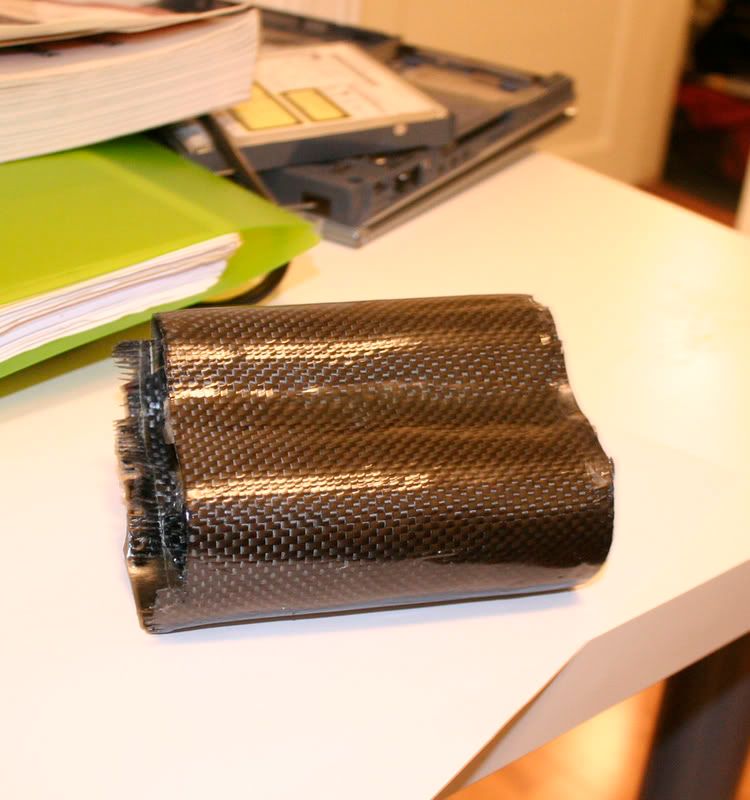 Et lite utvalg karbonfiber 2x2 3K twill, og aramid/karbonfiber 2x2 3K twill. Bygging av skall Bygging av festebrakett Resultat, trenger litt finkapping, pussing og mer lakk. 3x 20W LEDs Testing av LED, bildet yter ikke denne rettferdighet, det lyser HELT vilt. Midlertidig testrigg med monster kjøleribbe i tilfelle NOE skulle gå galt...