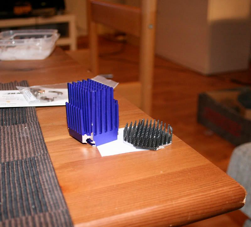 Kult å endelig se at et DIY-prosjekt er i gang. Materialvalg på kjøleribben er vel også et poeng her. Såvidt jeg vet leder kobber varmen vekk mer effektivt enn aluminium.