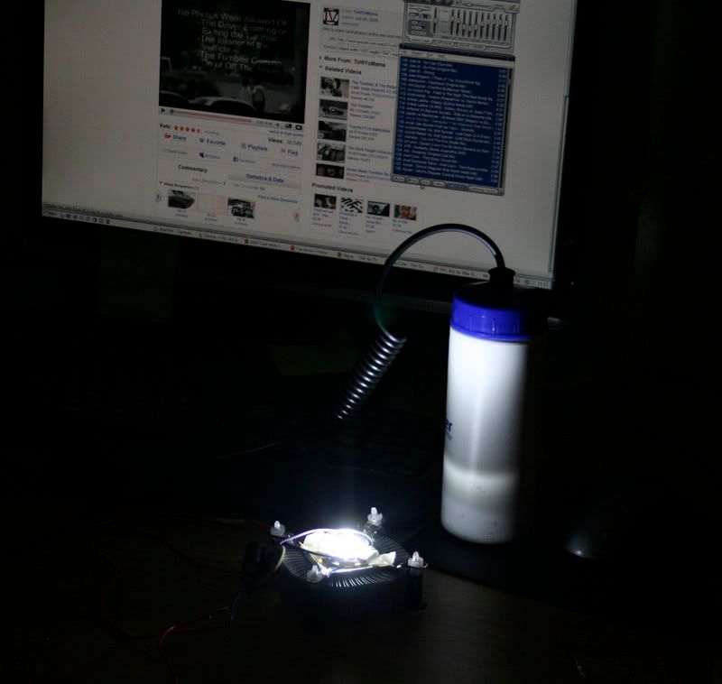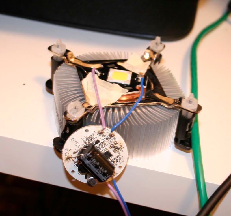 Poenget var å sjekke om den klarte å kvitte seg med varmen, LED'n tåler visst ikke mer enn 60 grader. Da jeg skrudde av tikka tempen opp til 64 grader :: Da starter jakten på nye kjøleløsninger, får se om jeg ikke finner på noe lurt.