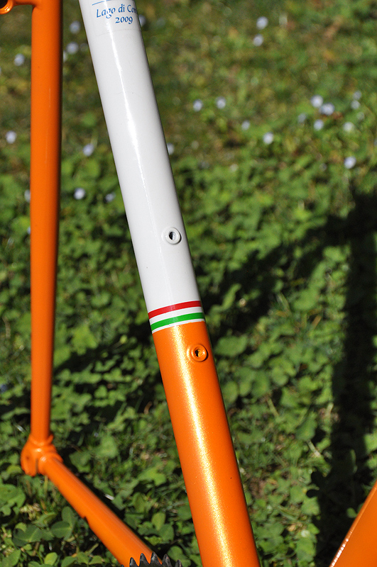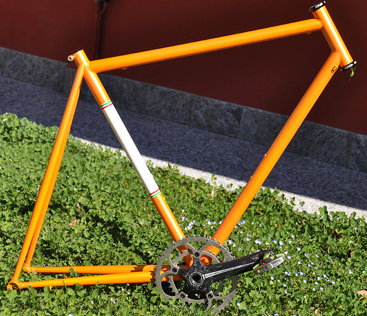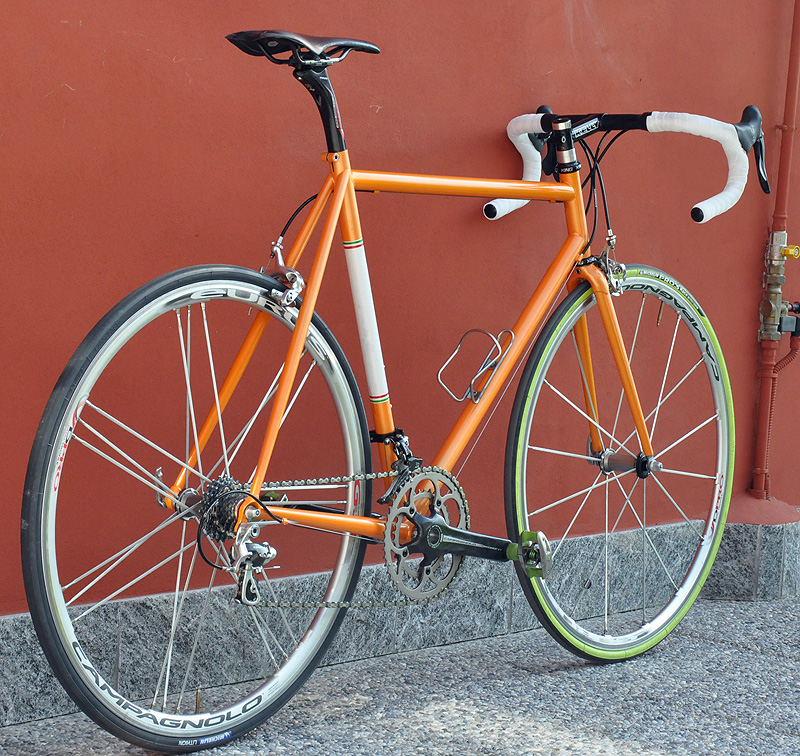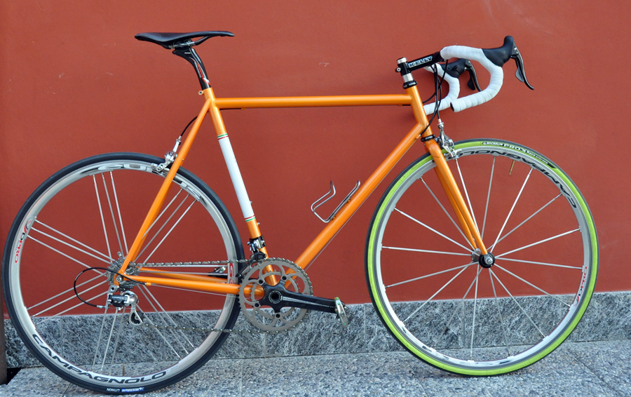 Tror det blir oransje gitt. Den første Kellyen min var jo oransje så da blir denne lakkert i litt samme stilen. Hvitt panel bare på seterøret som på De Rosas Neo Primato. Prøver også å få oransje-fargen i metallic hvis ikke Stefano Barzoghi legger på alt for mye på prisen for det.