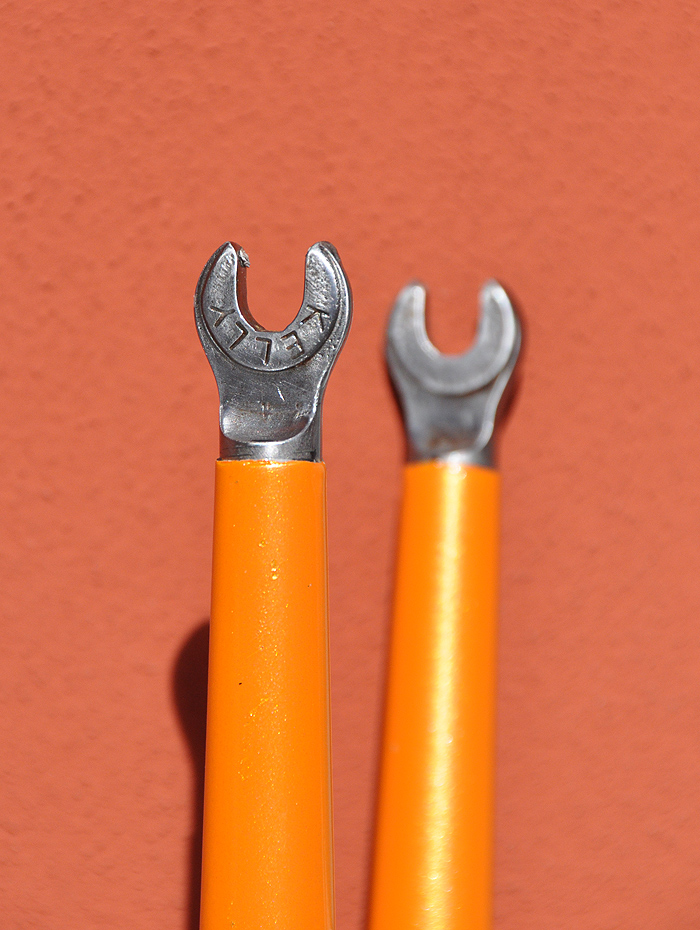 Lekkert! Eigentleg ville eg ha sagt at du skulle droppa nylakkering til fordel for naturleg patinering, men dette vart skikkeleg bra. Elles er eg glad for at ramma får att stålgaffelen sin.