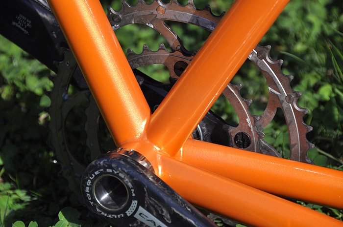 Innkjørt sete og helprofil rett fra siden. Legg merke til fasongen på Deda 215-styret og den kompakte kranken som jeg verken synes er stygg eller lite hensiktsmessig. På flate langturer ligger jeg bare på 50-klinga omtrent.