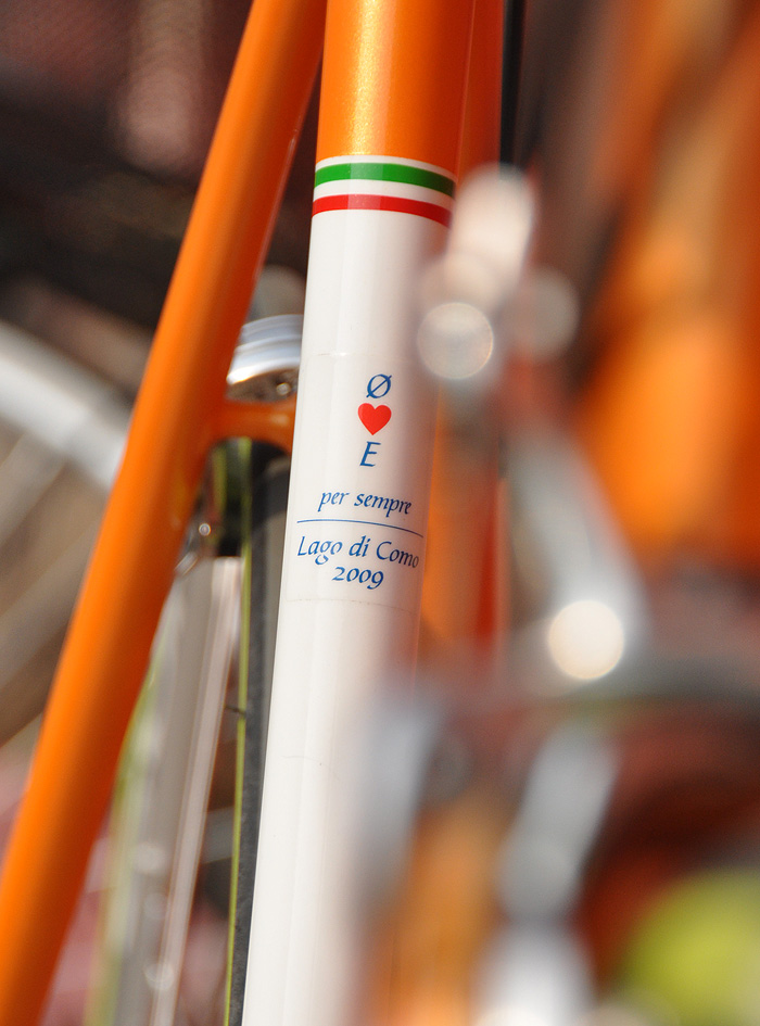 Strøken! Stålracere er bare det fineste som finnes av sykler og denne var i øverste klasse. Jeg må innrømme at jeg tafset litt på den under vårt opphold i Tremezzo da det var svært vanskelig å la være Er det en kjærlighetserklæring som har sneket seg inn på seterøret?