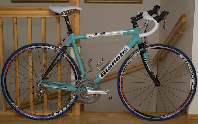 Jeg er fornøyd med denne italieneren. Burde kanskje hatt røde eller sorte dekksider, i stedet for blå, men akkurat nå ble det tilfeldigvis slik. Fargen står i stil til blåfargen som går igjen i sykkelklærne. Tillater meg en litt oppreist og avslappet sittestilling, grunnet fem prolapser i rygg og nakke, og to operasjoner. Holdt på å bli arbeidsufør få to år siden. Sykling minimum to mil hver dag til og fra jobb året rundt, samt riktig trening, har gjort meg tilnærmet frisk.