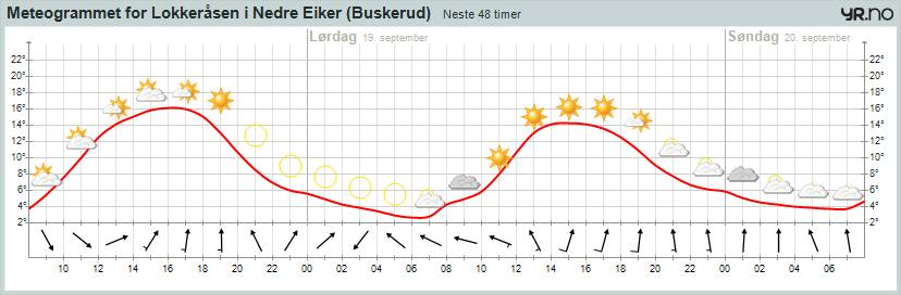 Ser ut som vi får knallvær på tur'n også. Kunne kanskje vært en eller to grader varmere, men det blir vel varmt nok i bakkane opp fra Årbogen...