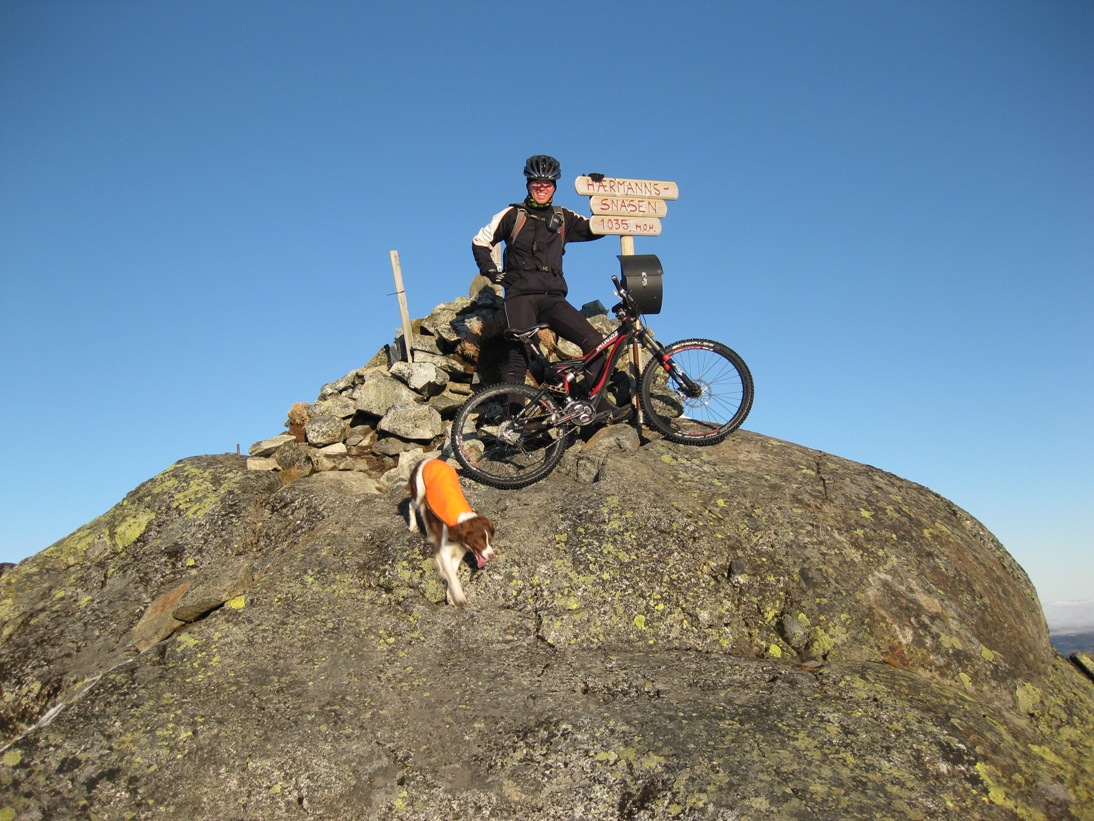 Det ble en knalltur til Hærmannssnasa i finværet Jeg har aldri syklet på så bra barfrostforhold i fjellet som det var i dag Harald dro med seg sykkelen helt til topps,det tviler jeg han angrer på,det var sinnsykt bra sykkelforhold ned fra toppen på sørsida Det så ut som han likte den turen der,jeg hørte ikke noe annet ihvertfall Klara sprang sikkert 5-6 mil i dag