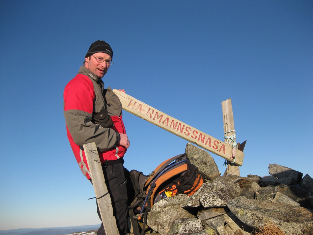 Her kommer noen bilder fra turen: Vi klarte nesten å starte til fastsatt tid 12-15minutter etter skjema er godkjent Harald er klar for tur til Snasa Harald på vei opp bakken til Geitryggen Harald koser seg i morgensola Her er vi på vei opp til Snasatoppen Det begynner å bli bra utsikt,og været kunne ikke blitt bedre Harald sykler oppe på platået Snøen var stort sett knalle hard Her har Harald kommet seg opp på toppen En eller annen dust satte opp nytt skilt i fjor med Hærmannssnasen istedetfor Hærmannssnasa,hva er dette for fjolleri? Harald koser seg på sykkelen bortover platået Når han sykler ned fra denne bergknatten går det nedover hele veien Her har Harald kanten ca 10 meter fremfor seg