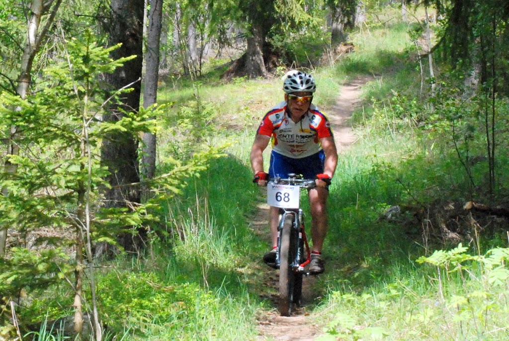 Jeg fyrer løs: Dette er fra klubbens vårsamling i svenske Eksjö. Helt utrolig med stier i dette området. Raske singeltracks, tørre og fine i starten av april. Og så må det sies at vi hadde go`været med oss hele samlinga.